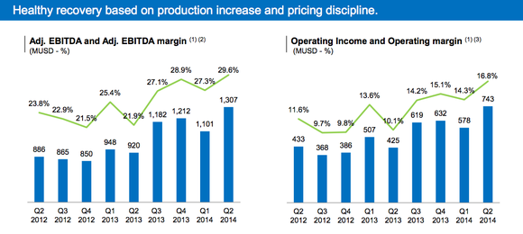 Both the upstream and downstream business are generating increased profitability because of growing volumes and increased prices.