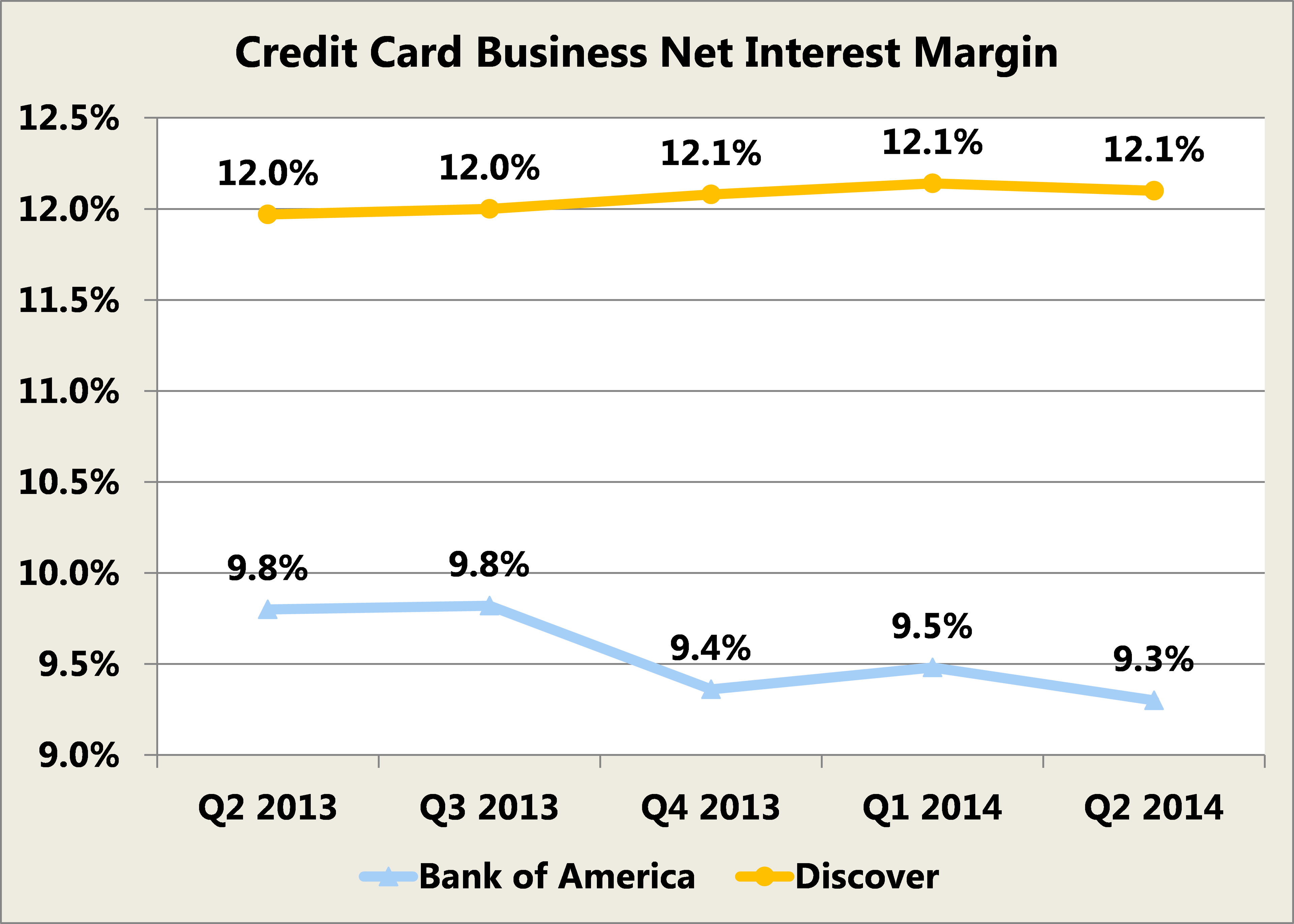 Not only does it consistently earn at a higher rate than Bank of America's credit card business, but it has also kept its margins incredibly stable over the last year.
