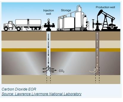 Enhanced oil recovery, or EOR, is an especially exciting area, because it both helps increase oil production and offers environmental benefits. Specifically, CO2 injection into oil wells increases pressure and lowers oil viscosity, resulting in up to three times greater oil recovery from shale formations. Much of the CO2 remains trapped underground where it won't contribute to climate change.