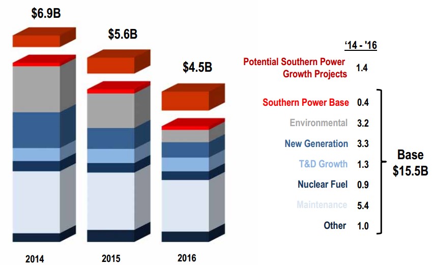 The company is embarking on an expensive $17 billion capital expenditure program for the next three years, with projects ranging from maintenance jobs to environmental spending to power base load expansion. Unfortunately, around $2.6 billion of this is slotted to cover unexpectedly high costs for Southern's Kemper County, Mississippi, clean coal power plant.