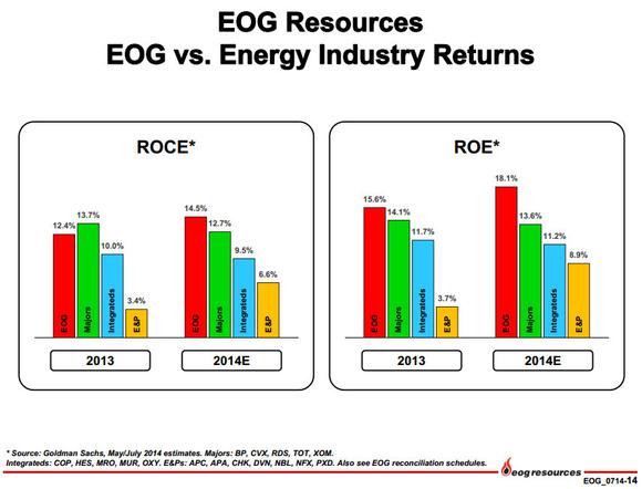 First, EOG is focused on returns. EOG's high return production growth is showing up as strong growth in cash flow, net income and through increasing ROE and ROCE metrics. ... EOG is well-positioned to be a long-term leader in returns on capital in the energy sector.