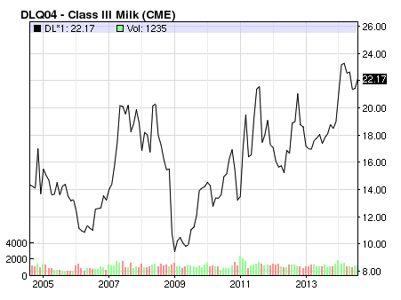 This is important because pricing for dairy products is very elastic, meaning the price can change rapidly if supply or demand change. This could be seen during the recession of 2009 after prices plummeted and many dairy farms approached bankruptcy.