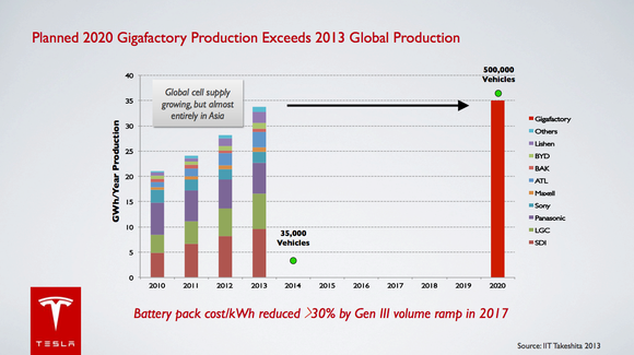 Slide from initial Gigafactory presentation. Image source: Tesla Motors.