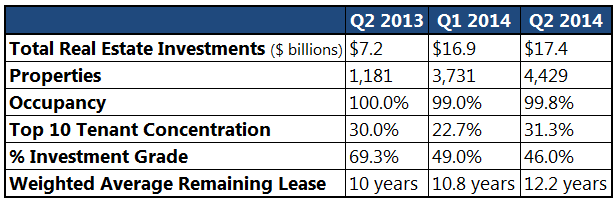 In October of last year, American Realty Capital Properties acquired Cole Real Estate Investments in an $11 billion move as it became the largest publicly traded net-lease REIT. As a result, the raw numbers of its results are even more eye-opening.
