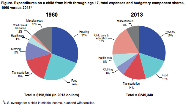 In fact, the rise in this one category accounts for over 85% of the growth in the costs to raise a child between 1960 and 2013.