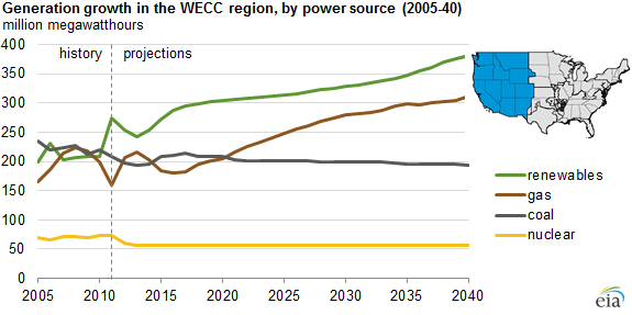 Finally, out in the West the EIA actually does see a brighter future from renewables as noted in the following chart.