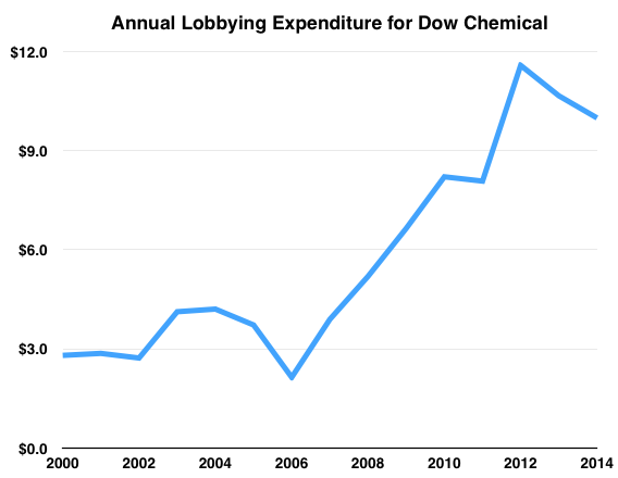 As of right now, the level of disclosure remains impressively low. Dow Chemical, for example, has zero mentions of the word lobbying in its second quarter 10-Q, 2013's 10-K, its conference calls, and so on. While you can track down which bills Dow lobbies for and how much it spends per quarter, there is very little information available to determine much else.