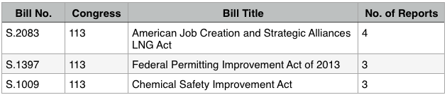 If you're a Dow investor, or follow the natural gas industry at all, you might have guessed that liquefied natural gas (LNG) exports are behind the uptick in lobbying activity. Here's a look at the top three issues for Dow Chemical based on reports filed. Note, there is no specific dollar amount reported per issue, so the number of reports is all we have to go on when measuring importance: