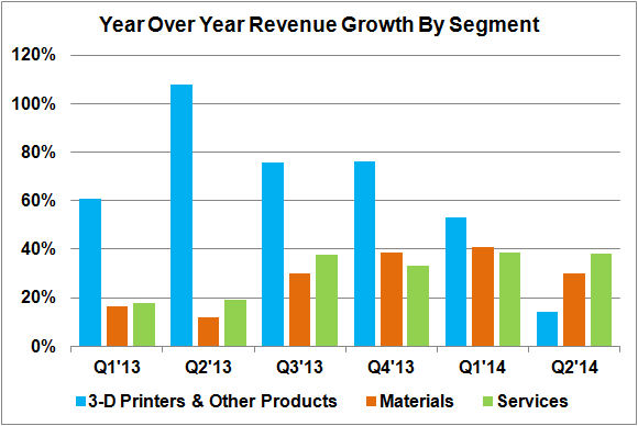 During the quarter, 3D Systems' design and manufacturing revenue rose 28% year over year, driven by a 126% increase in units sold, suggesting that its flagship products are being well received. Over the long term, a growing installed base of 3D printers should help 3D Systems drive a long-term stream of recurring revenue growth through the sale of highly profitable proprietary materials that are consumed as its 3D printers are used. Going forward, investors should acknowledge that material sales will likely become an increasingly important driver of 3D Systems' overall profitability as the company continues growing its installed base with faster and even more capable machines.