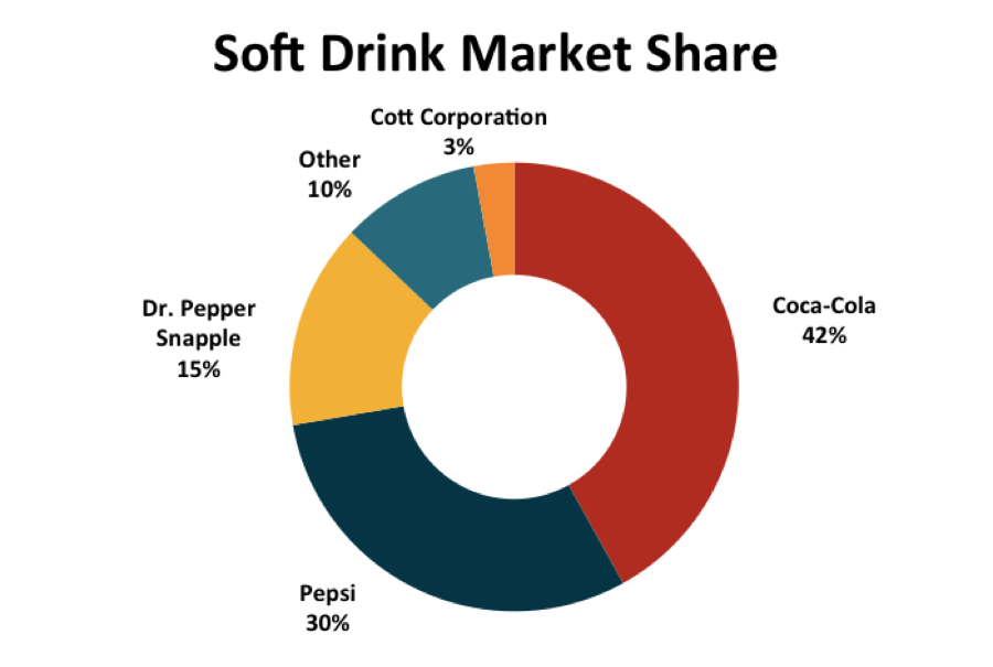 The soft drink industry consists of companies that develop, manufacture, and market carbonated beverages. Coca-Cola (KO 0.18%) and Pepsi (PEP 1.88%) are the two obvious heavyweights in this arena, but Dr. Pepper Snapple (DPS +0.00%) holds a not-so-trivial 15% of the American market as well: