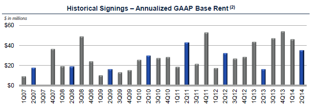 A simple glance at lease signings it has made it the first half of 2014 relative to the last seven years reveals just how well the company performed through the first half of this year versus the traditionally slower season: