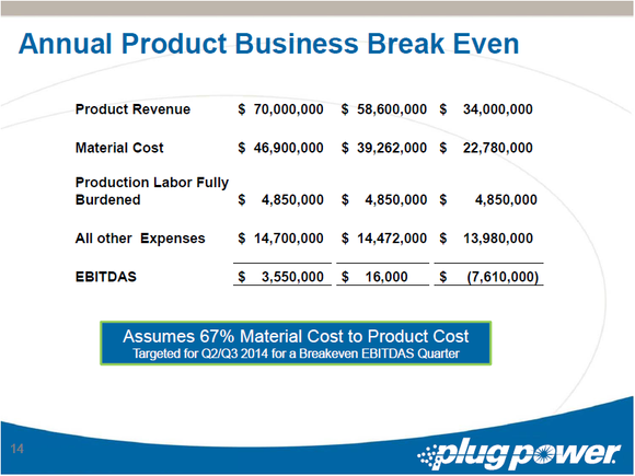 The next big step for the company will be to turn those sales into some semblance of profitability. If this quarter's products sales figures can be repeated on a regular basis, it would put annual product revenues just over $50 million. According to the company's most recent investor presentation, this level of sales should equate to a positive EBITDA figure, and Plug should be there this quarter.