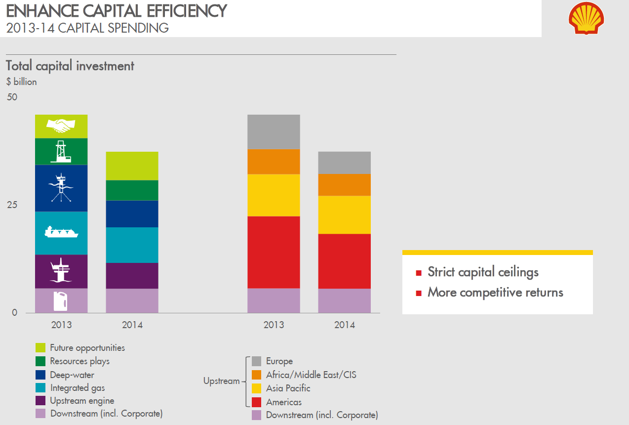As a means to boost cash flow and profitability, Shell has started a $15 billion asset sell-off, as well as a reduction to its capital budget. Shell's management estimates that capital expenditures for this year will be 20% less than in 2013, and it plans to sell off $15 billion in underperforming assets to increase overall returns for the company.
