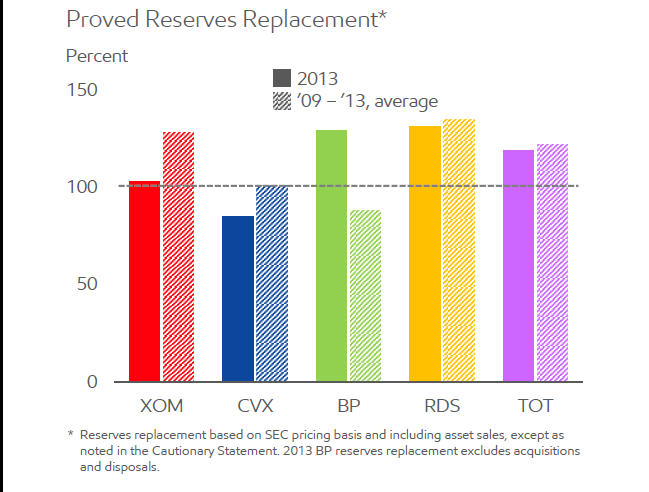 According to the most recent Ernst & Young reserves survey of 50 major oil and gas producers, Royal Dutch Shell has been the worst among its integrated peers based on reserve replacement costs -- the amount of money spent to add a barrel of oil equivalent to its reserve base. In fact, its reserve replacement costs were only lower than two of the 50 companies surveyed.