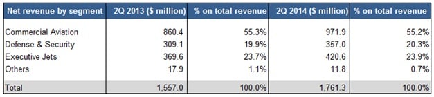 In the quarter, the company recorded revenue of $1.76 billion, that comfortably beat average analyst estimates of $1.67 billion, and was up 13.1% over the year-ago period's $1.56 billion. The growth came from strong commercial and executive jet deliveries coupled with a 15.5% revenue increase in the Defense and Security segment.