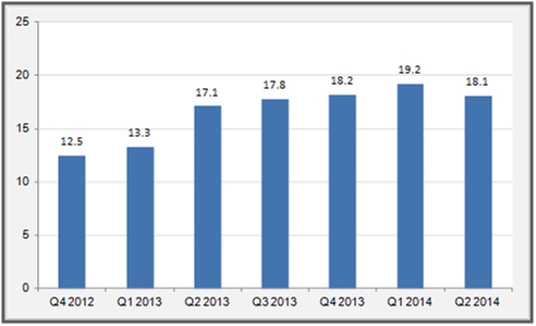 The company's commitment toward lean management and cost efficiency is helping to keep overhead in check. And with the conclusion of the E-Jets E2 development program in June 2013, the quarter's research expenses saw a dramatic fall to $11.4 million from $30.2 million in the same period last year, helping operating profit to grow. Embraer also gained from a tax credit of $15 million on account of foreign currency movement vis-à-vis an expense of $97 million in the second quarter of 2013. For fiscal year 2014, analysts forecast the Brazilian jet maker to earn $2.52 per ADS -- a marked improvement over $1.88 per ADS recorded last year.