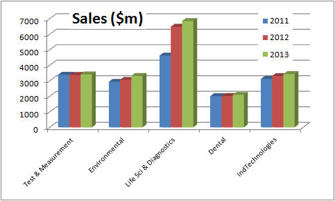 Clearly, the dental and test and measurement segments haven't grown over the past three years, and it's not clear whether the current weakness is merely part of a deteriorating end market.