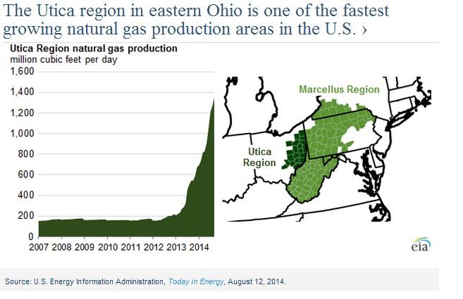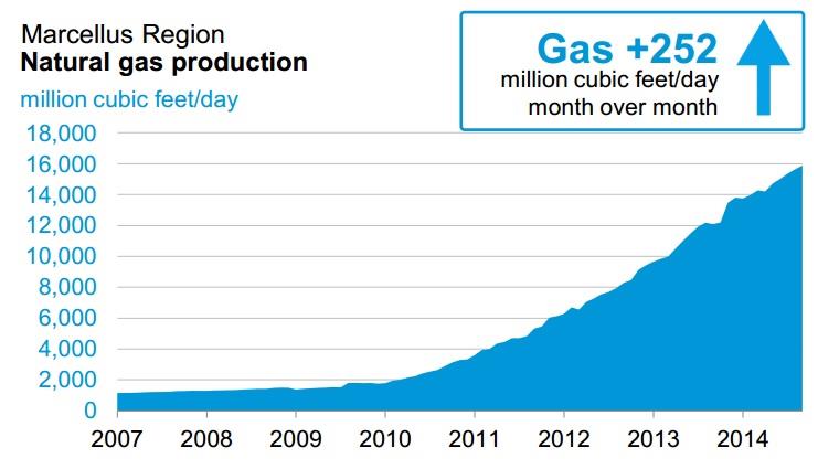 This amazing production growth has been thanks to technology such as hydraulic fracturing and horizontal drilling. Its also been due to geological formations such as the Marcellus and Utica shale, whose production has increased 47% annually since 2007 and 165% since 2012, respectively.