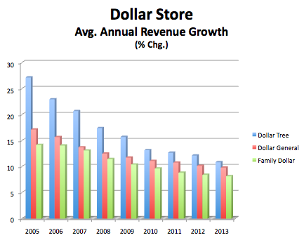 Dollar General, for example, is more than twice as large, with 11,338 stores in 40 states, and if it were successful in acquiring Family Dollar, something it seems committed to as it just upped the ante by raising its already superior bid to $9.1 billion and providing a bunch of sweeteners to management (such as large breakup fees and antitrust reassurances), it would increase its footprint by another 8,200 stores in 46 states.