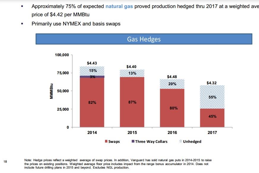 In the last quarter Vanguard received an average of $3.48 per MMbtu for its gas. As its older hedges end, its new hedges, which are priced 27% higher, will help greatly increase DCF and secure the distribution for the long term.