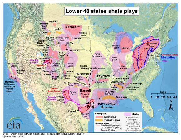 The following map details America's immense shale oil and gas potential as it outlines the various shale plays spread around the country.