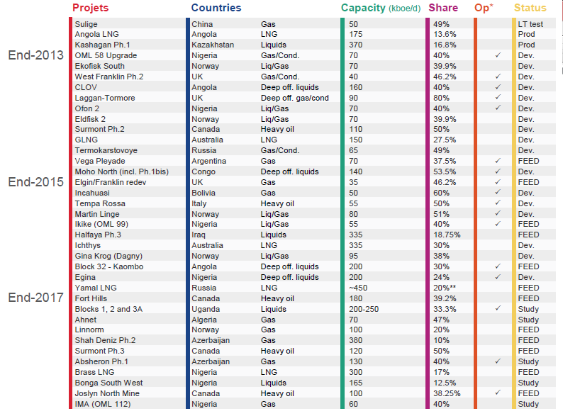 Looking up and down the project portfolio for Total looks pretty impressive. It represents more than 750,000 barrels of oil equivalent per day of production, several of which will be decades long cash generators such as heavy oil prodiuction in Canada as well as LNG. The one downside to many of these projects, though, is that Total is the operating partner in very few of these projects, and the ones where Total has the operator stake are mostly smaller projects that won't have a significant impact on the production portfolio.