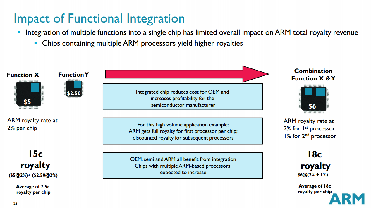 Note the key point ARM makes: Integrating the functionality reduces the cost for the customer buying the final chip and improves profitability for the chip vendor.