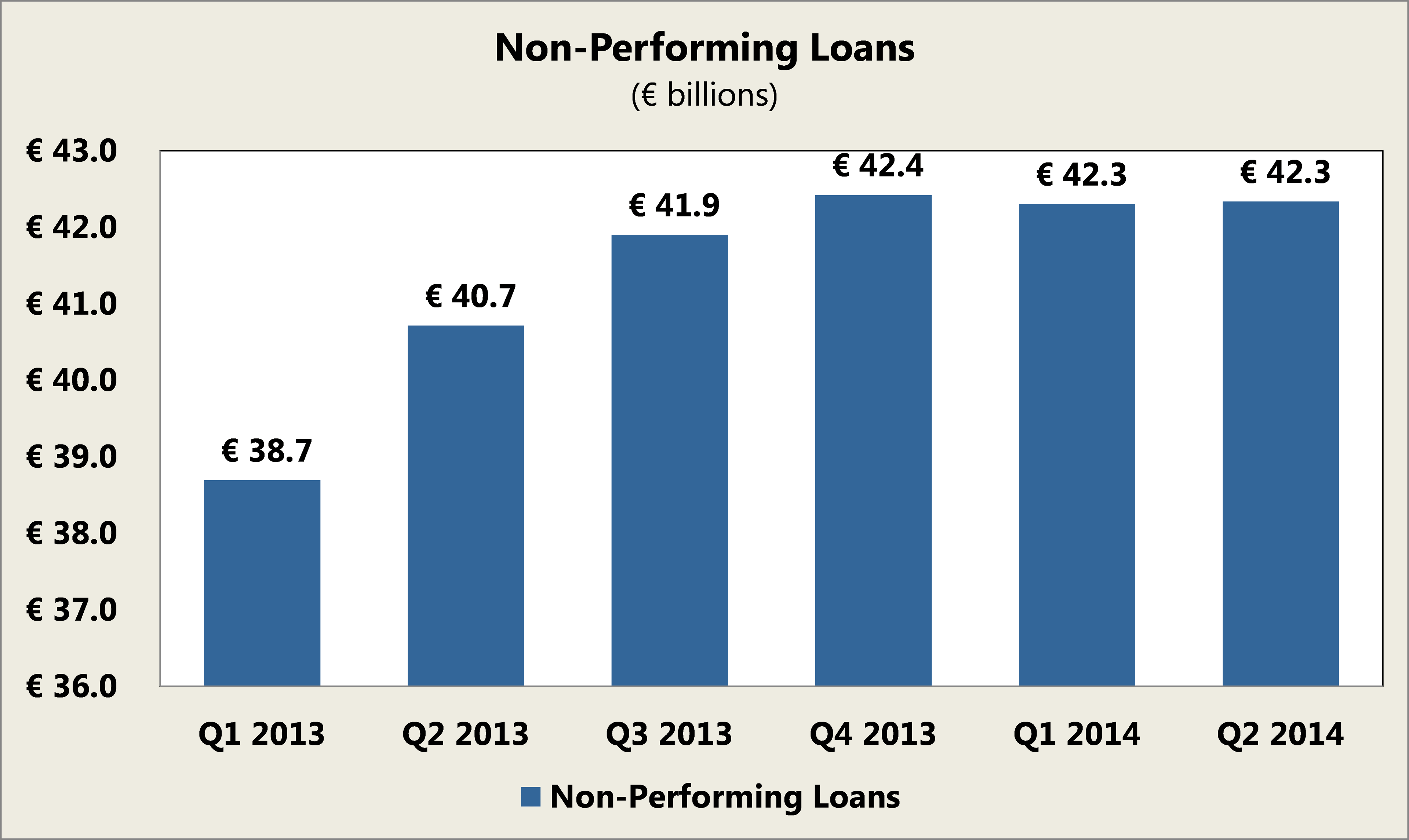 In addition to the massive impact currency fluctuations can have on its bottom line, Banco Santander also faces the reality that even on a constant basis, its non-performing loans have grown dramatically since the beginning of 2013 and were actually up again -- albeit marginally -- in the most recent quarter: