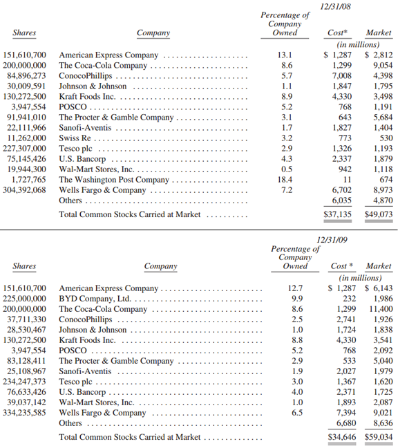 Source: Berkshire Hathaway 2008 & 2009 annual letter to shareholders.