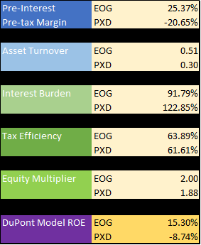Using this model we can deconstruct the returns of both EOG Resources and Pioneer Natural Resources to see if EOG Resources' ROE is being inflated or if it really is as good as it says it is.