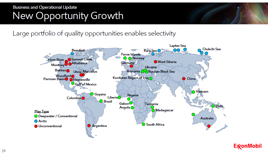 ExxonMobil's plans are centered in three main areas: LNG, oil sands, and Arctic exploration. In the next few years, it hopes to make major expansions at its Keal Oil sand project that will produce close to 350,000 barrels per day. Further down the road, though, it will have massive amounts of capital tied up in Russian Arctic exploration. In a deal it signed with Rosneft a couple years ago, it will begin an exploration and development plan there that could cost as much as half a trillion dollars. That's a lot of potential, but lots of things need to go right for it to happen.