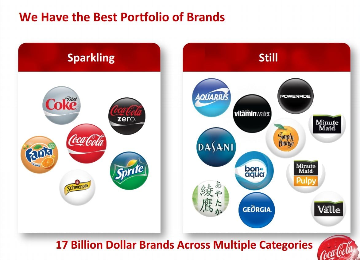On the other hand, the company owns 11 billion-dollar brands in the noncarbonated category that continue performing strongly: Sales volume in still beverages increased by an impressive 5% during the second quarter of 2014, and Coca-Cola gained both volume and value share across categories such as sports drinks, tea, energy, coffee, and water during the quarter.