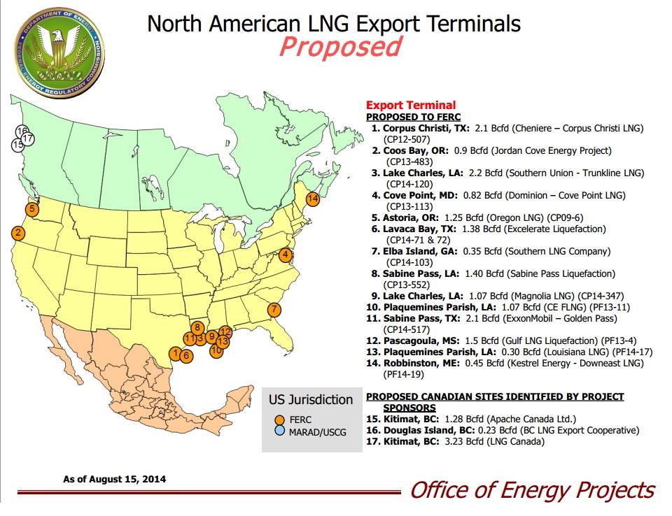 Specifically, Cheniere's Sabine Pass LNG (liquefied natural gas) export terminal is threatened by the coming disaster, along with three of America's 14 proposed LNG export terminals. In total these four terminals represent 23% of America's potential LNG export capacity and should they be taken offline by the rising waters, many of the benefits of natural gas exports could be threatened.