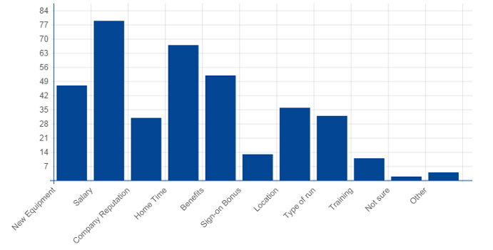 The more interesting takeaway from the above graph is how close home time is to salary as a deciding factor in selecting a job. Family and home are greater priorities for truck drivers now, which means not many are willing to go on long-haul trips that require them to stay away from home, often in solitude, for several days or even weeks at stretch. Perhaps paying out more could again be the solution here, especially for companies that rely heavily on long hauls for revenue.