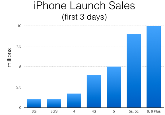 So let's take a quick look at how the latest iPhone sales numbers compare to those of previous models: