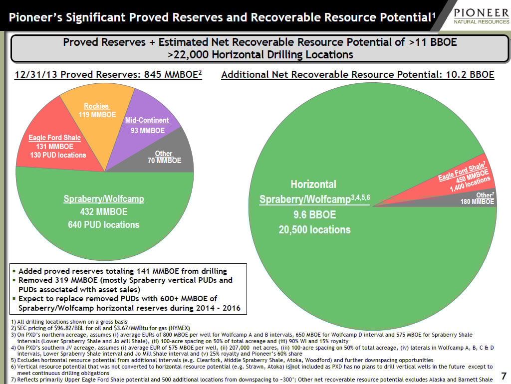 However, the real story when it comes to Pioneer Natural Resources is the simply massive resource potential of the company's Spraberry/Wolfcamp position in the Permian Basin. As this next slide shows, the company is sitting on a combined resource potential of upwards of 11 billion barrels of oil equivalent.