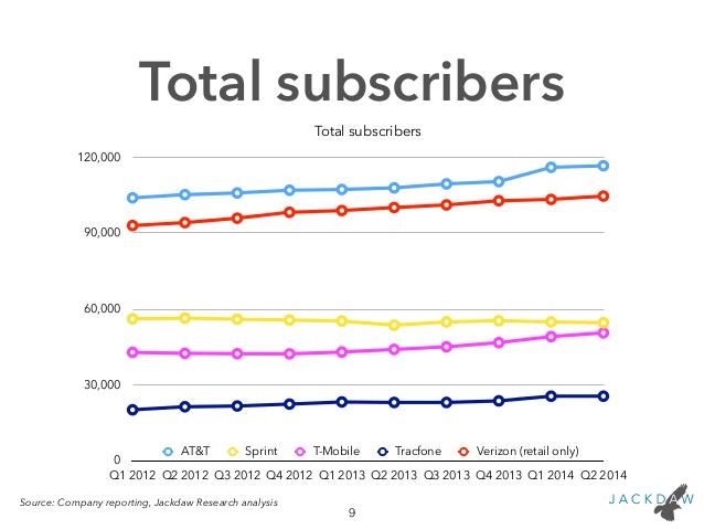 In Q2 2014, Verizon Wireless added 1.4 million net additions. About 1.15 million of those were tablet subscribers, and just 304,000 were cell phone subscribers. The company's strong subscribers numbers have lead to steady revenue growth between 5%-8% each quarter since the beginning of 2013.