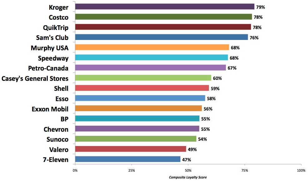 Instead, what pushed Kroger ahead was convenience and, to a lesser extent loyalty cards. Shoppers named Kroger's loyalty program, which lets you rack up points that you can apply as discounts to future purchases, as a key reason to buy gas there.