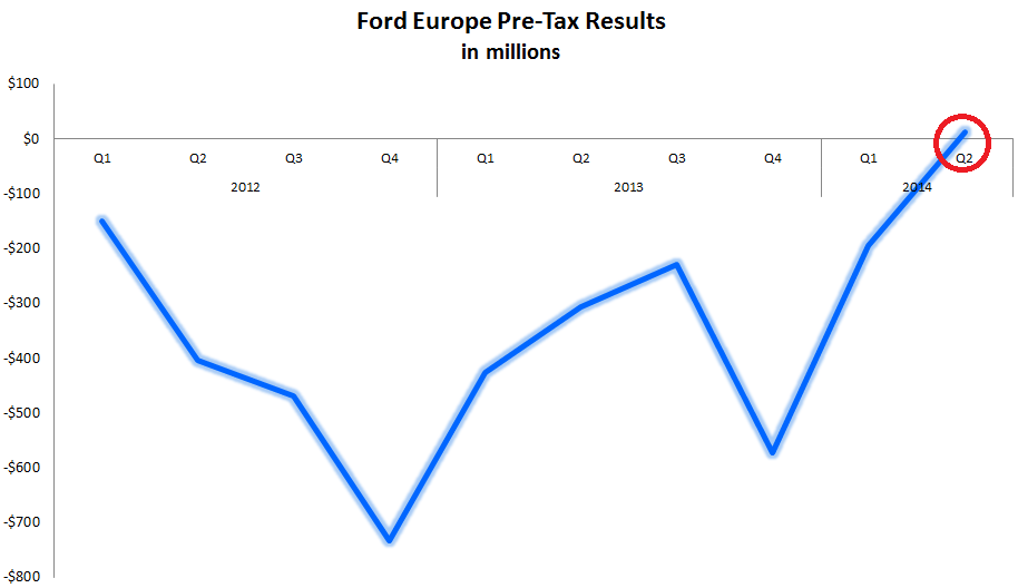 One of the biggest disappointments during Ford's investor day presentation was certainly the updated guidance coming out of its European operations. Just last quarter Ford surprised investors with a quarterly profit in Europe, which seemed to cement its guidance for the company to break even in Europe for 2015, a move that will eventually save Ford billions in net income.