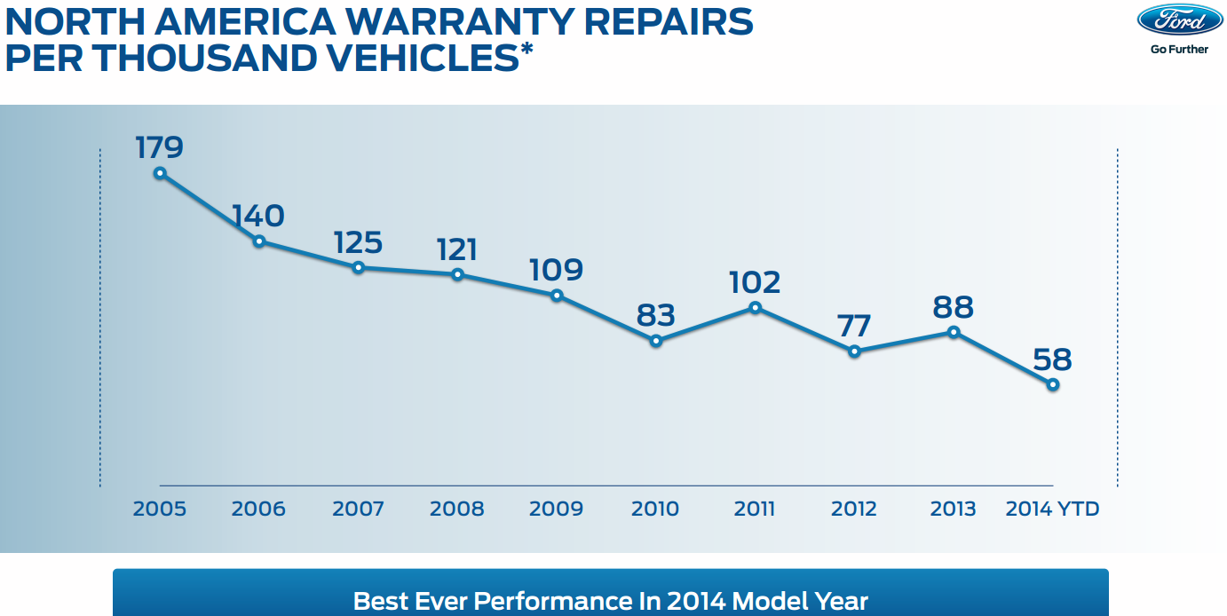 Despite warranty costs rising and weighing down profitability in the near term, investors should feel confident that Ford's quality is improving and that issues per thousand vehicles are at a record low -- something that bodes well for Ford's future.