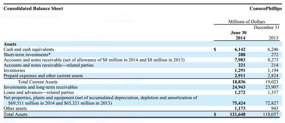 Source: ConocoPhillips 10-Q for the second quarter of 2014.