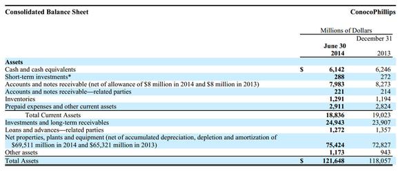 Source: ConocoPhillips 10-Q for the second quarter of 2014.