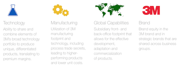 Impressively, 3M is also able to reinvent itself consistently by inventing new products to enter new markets. This is driven by technology cultivated in 3M's labs, and is often kept -in-house with its global manufacturing capabilities.