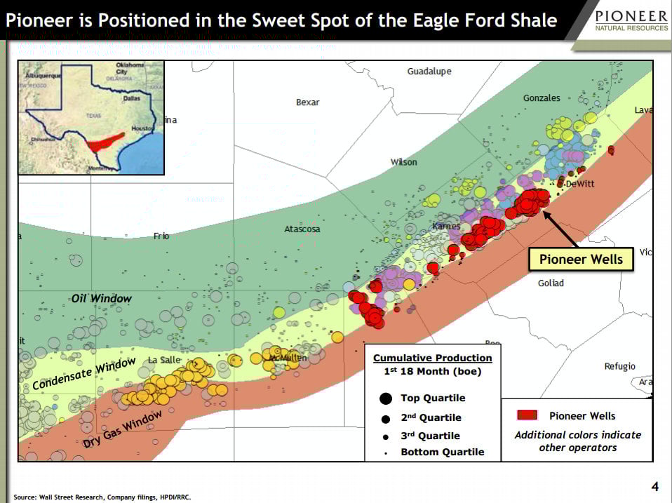 As the following map shows, Pioneer's acreage is right in the sweet spot of the play.