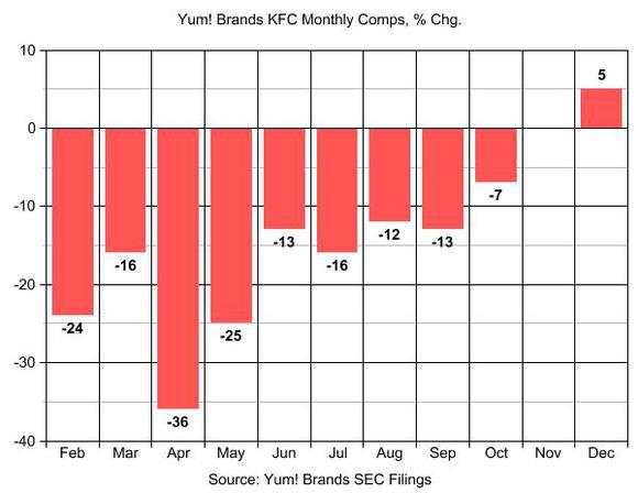 Going on the theory that sales this year in June and most of July were positive, that means they just completely vanished in August to get it to a point where comps were down 14% this quarter. In fact, that number is just as bad as the quarterly decline it recorded at KFC last year.