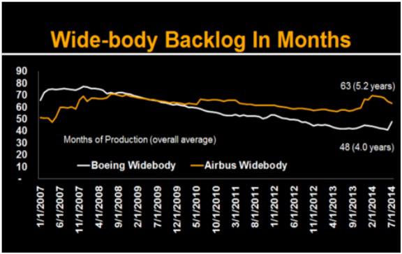 Both Boeing and Airbus have solid wide-body backlogs. The latest order trends show that demand for older airplanes is declining as airlines prefer newer, fuel-efficient aircraft. This is prompting the aircraft majors to come up with upgraded models, and the road ahead looks promising.