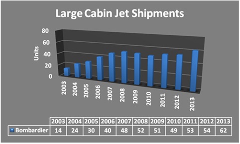 Bombardier is present in all three categories of business jets – light, medium and large through its Learjet, Challenger, and Global families – unlike Gulfstream, whose offerings are concentrated just on the medium and large segments. This well balanced portfolio has ensured that Bombardier stayed ahead of competition both in terms of number of units sold and revenue earned for almost a decade.
