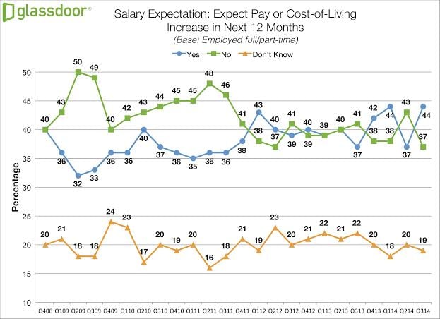 The most recent jobs numbers from the Bureau of Labor Statistics were good news: Unemployment now sits just below 6%, the lowest level since the 2008 recession. And workers had already noticed what the BLS report made official. A newly released Glassdoor/Harris Poll survey of working American adults, taken in early September, found that 47% of those surveyed were confident that they could find a good new job in the next six months. The poll also found that 44% of surveyed workers expect a raise or cost of living pay increase over the next year, and that one-third of workers said their employer had undertaken a major hiring initiative over the past half-year.