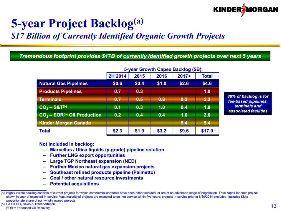 We want to see Kinder Morgan's backlog continue to grow as the company announces new projects and increases its backlog. As the following slide notes, Kinder Morgan currently has a number of projects that are not included in its backlog.