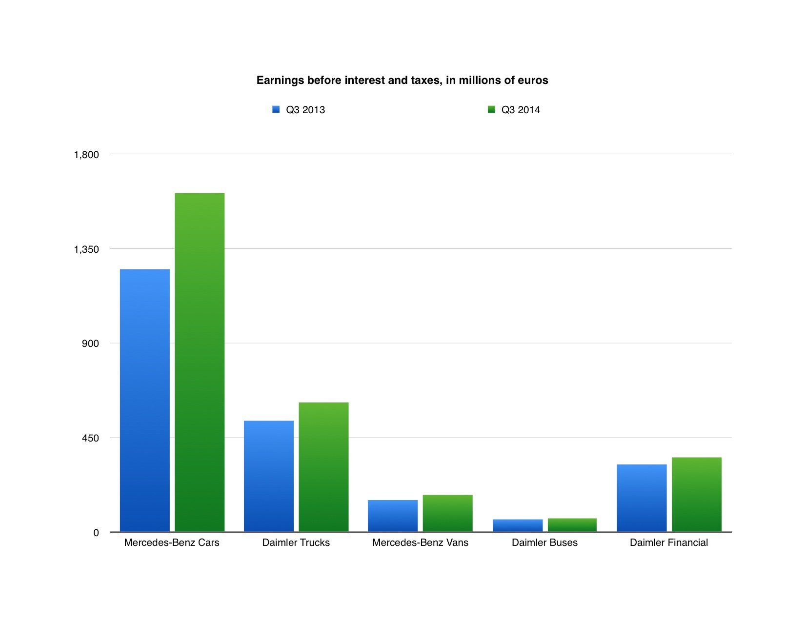 Daimler's businesses include Mercedes-Benz Cars, three separate units that make trucks and buses, and a financial-services arm. All five units posted a solid year-over-year increase in pre-tax earnings: